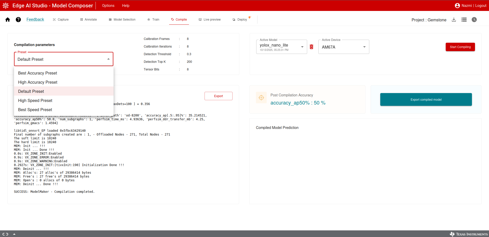- How the model required to use the image processing capabilities of the Gemstone O1 development board is prepared via Edge-AI.