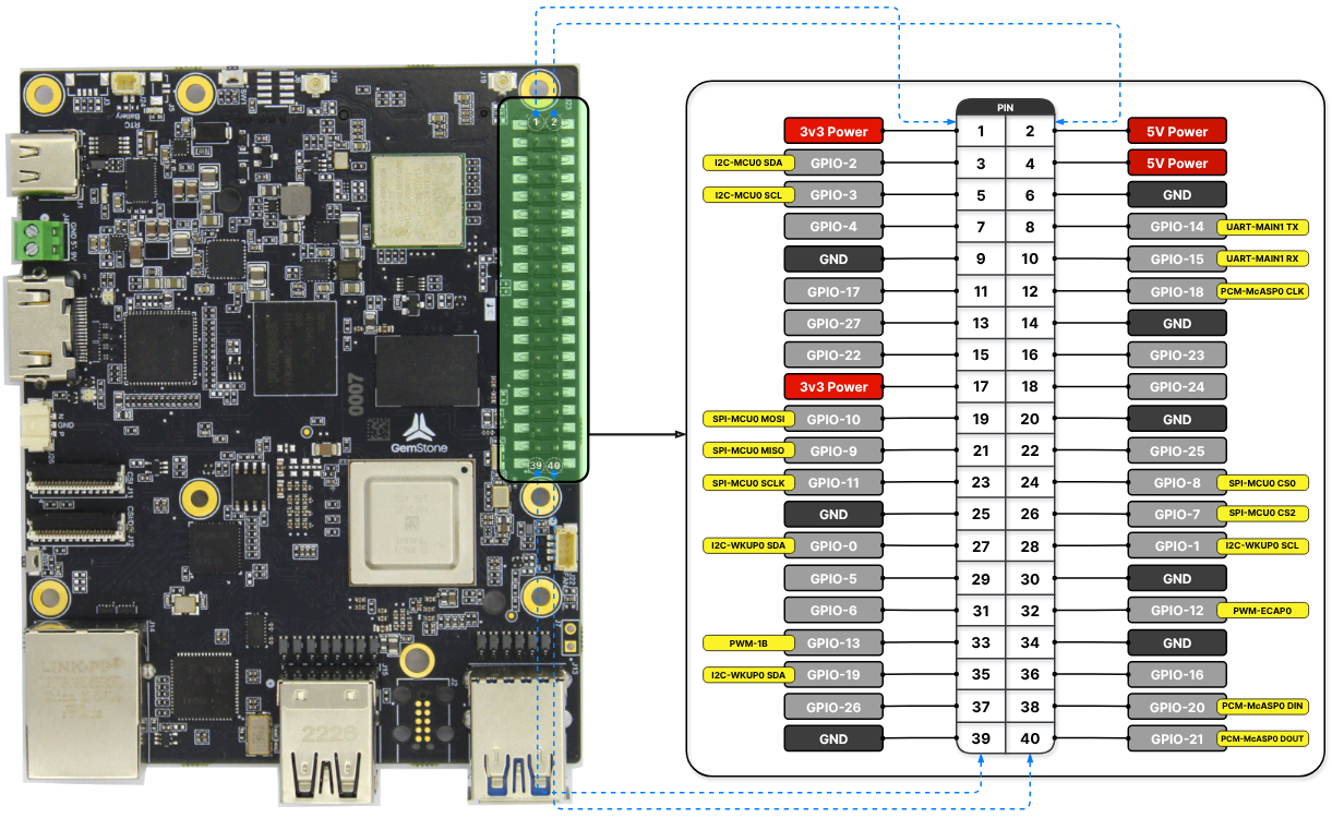 Gemstone üzerinde Input/Output olarak kullanılabilir durumda olan GPIOX’e aşağıda gösterildiği gibi led bağlantıları yapılır.