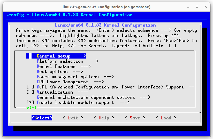 Çeşitli donanım sürücülerini aktif/deaktif edecekseniz veya kernel konfigürasyonunu değiştirecekseniz (kısacası Kconfig ile tanımlanmış özellikleri değiştirecekseniz) menuconfig arayüzünü kullanabilirsiniz.Menuconfig ekranının açılması